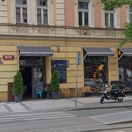 Das 1-Zimmer-Apartment Комфортная, Уютная,Романтичная Prag befindet sich im Stadtviertel Vinohrady von Prag, in circa 5 Gehminuten Entfernung von der Kirche des heiligsten Herzens des Herrn.